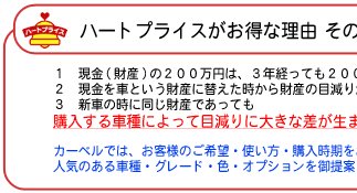 ハートプライスは新車購入の際、お支払い額の最高7割(車輌本体価格の70%)をあと回しに出来るローンです。 リースのように“借りる”というものではなく、あくまでもご購入いただけるプランです。 2〜5年後はライフプランに合わせて3つの選択が出来て、とってもお得です!